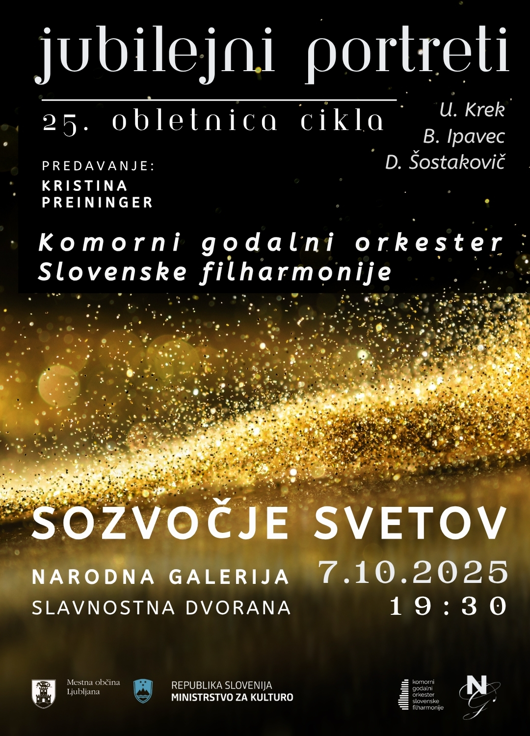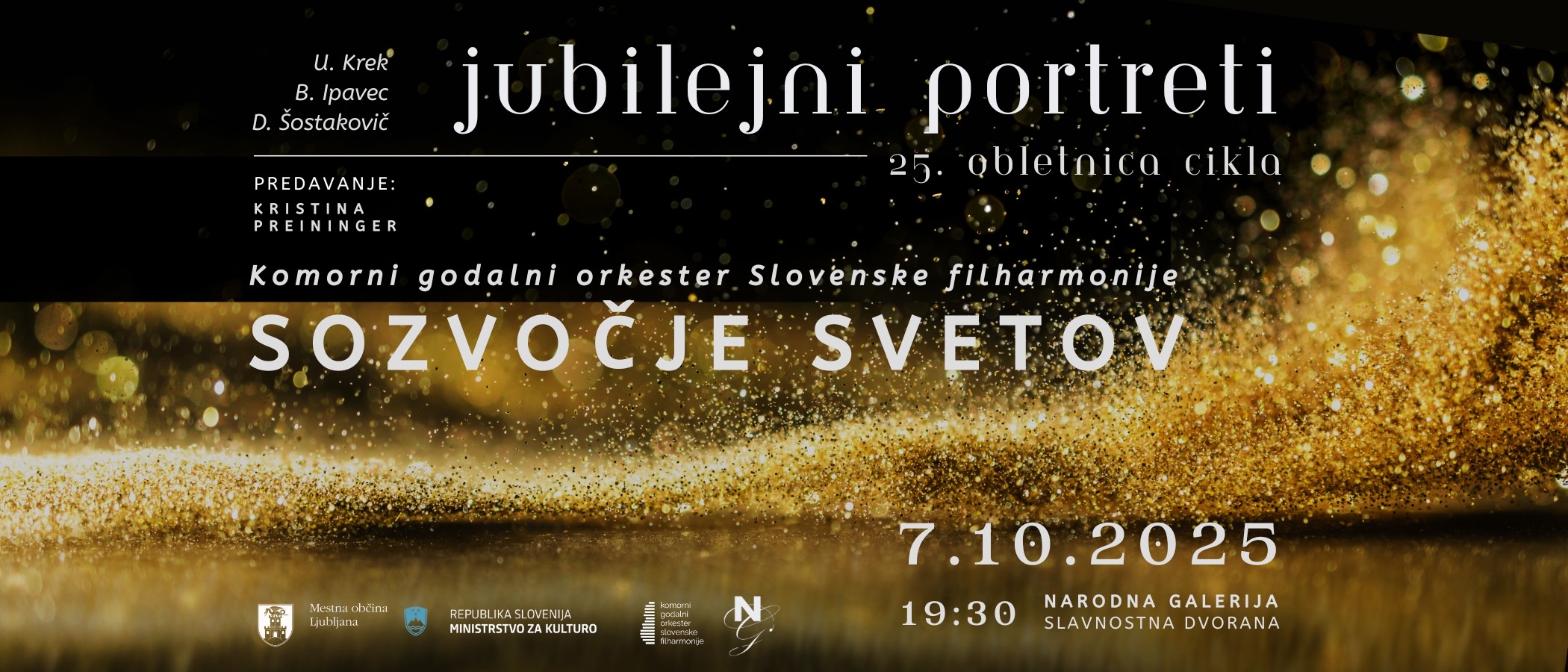 Od oktobra 2025 do maja 2026 se bo zvrstilo šest predavanj in koncertov v čudoviti Slavnostni dvorani Narodne galerije.