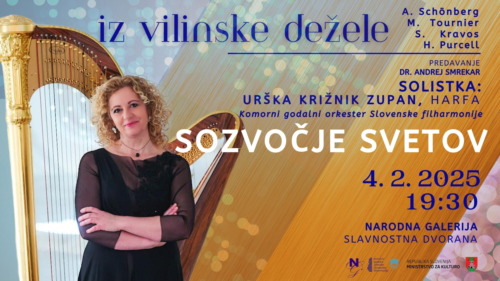 S. Kravos: Nosferatu H. Purcell: Suita iz Vilinske kraljice A. Schönberg: Nokturno za godala in harfo M. Tournier: Féerie: preludij in ples za harfo in godala